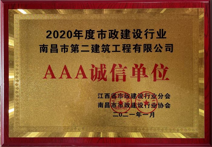 日前,江西省市政建设行业协会和南昌市市政行业协会召开两年一次的先进表彰大会,我公司优异成绩连获2020年度省、市市政建设行业“先进单位”和“AAA诚信单位”称号。