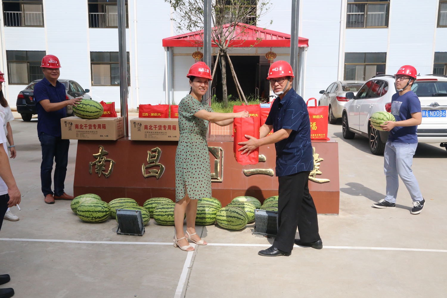 时值高温,公司工会关心一线生产员工。党委委员、工会主席付蓉一行,于8月13日、14日连续两天,带着防暑降温用品,走访了滕王阁南扩、绳金塔民俗风情街、南昌市第六粮库易址重建等建设项目,代表公司看望慰问战斗在一线的建设者们,并检查了工地食堂、住宿等生活设施,督促项目部在防疫降温的特殊时期,安全生产,平稳渡夏。