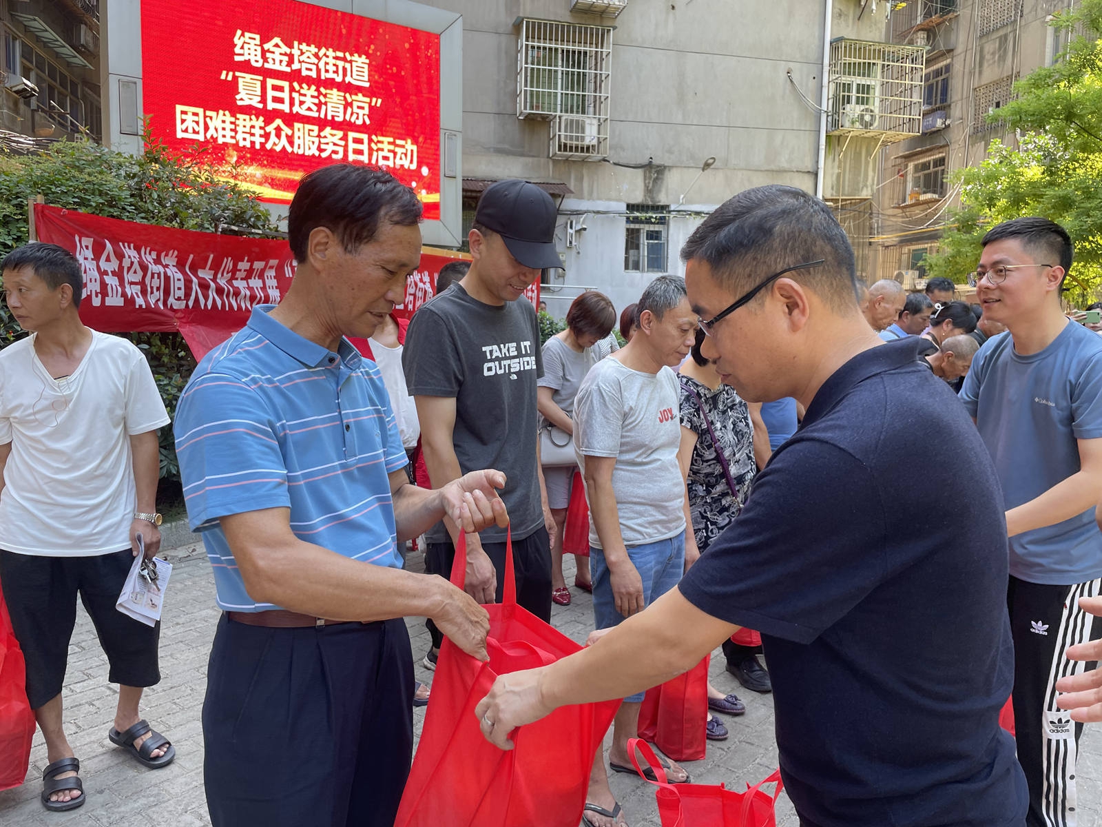 7月22日,公司党委与共筑共建对象绳金塔街道张家山社区党总支一起,参加了由该街办组织的“困难群众服务日”活动。南旅建工集团总经理、公司党委书记、董事长王彦,南旅建工集团党委副书记、常务副总经理龚戬,公司副总经理郭秋芳、公司纪检书记王小华、工会主席付蓉等领导率相关部门参加?;嵘?,王彦同志代表公司对本次的活动表示赞赏,并以感恩和回馈社会的情怀,向关心支持公司发展的各界朋友致以感谢。活动围绕“夏日送清凉,呵护你我他”主题,向到会的困难群众赠送了带去的防暑降温用品,受到社区和群众的称谢。
