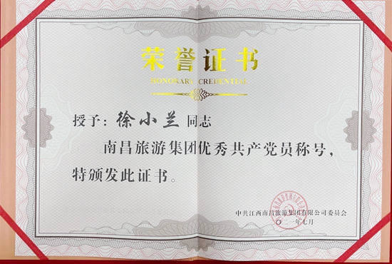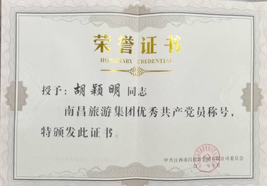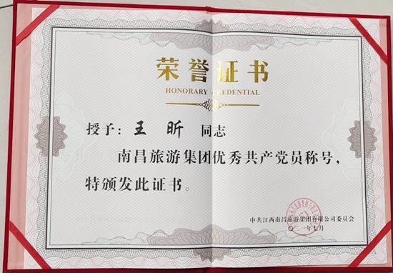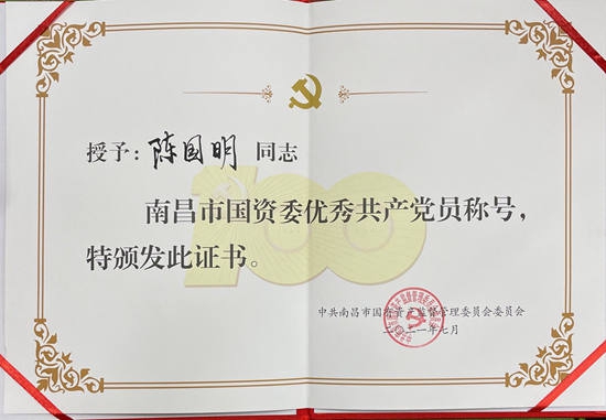 在隆重纪念中国共产党成立100周年之际,南昌市国资委和南昌旅游集团于近日对一批来自各条工作战线上的优秀党员和优秀党务工作者及先进基层党组织进行了表彰,奖励他(她)们在各自的工作岗位上履职尽责创先进、立足岗位争优秀,在推动企业高质量发展中充分发挥战斗堡垒和先锋模范作用。其中,公司陈国明同志荣获市国资委“优秀共产党员”称号,公司党委被评为南旅集团“先进基层党组织”,党员职工胡颖明、徐小兰、王昕、王贞同志获南旅集团“优秀共产党员”称号。